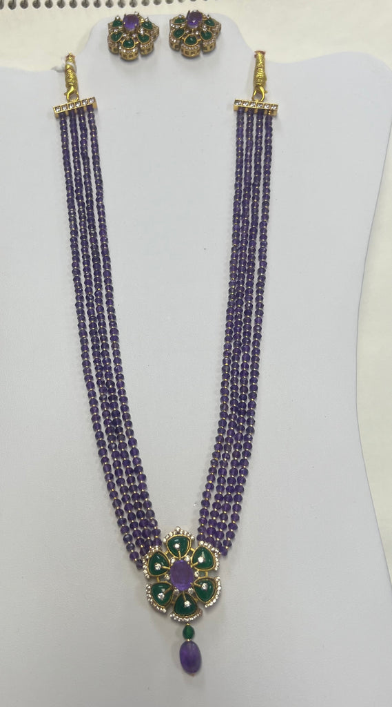 4-string Amethyst Necklace Set with 24 karat gold-plated beads