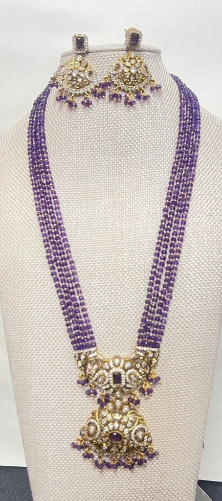 Multi Sapphire Necklace And Earring Set (24k Gold Coated Beads)