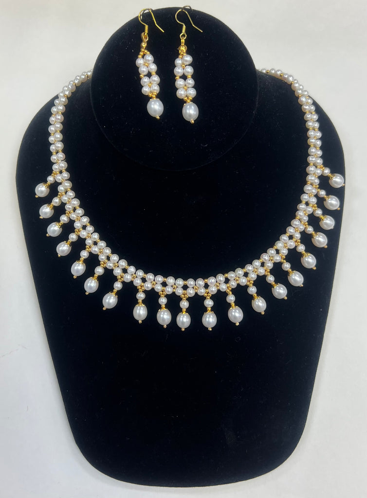 Side Drilled Pearl with Faceted Red Coral Necklace Set #SDPC-1