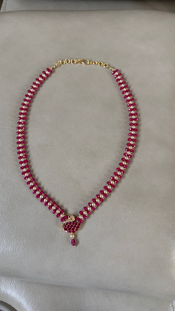 CHETAN RUBY AND SWAROVSKI PEARL NECKLACE